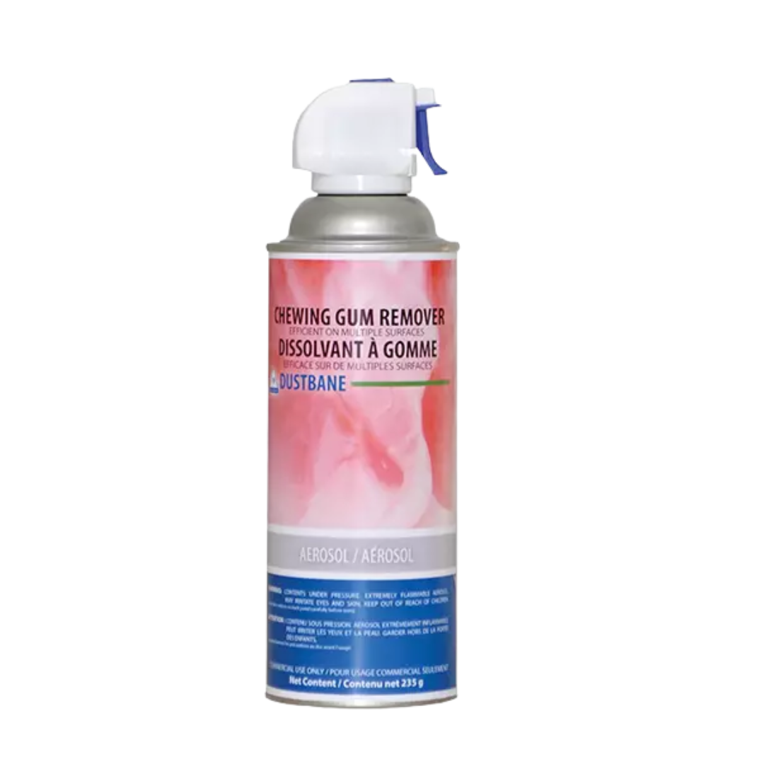 Dustbane® Chewing Gum Remover is a ready-to-use aerosol that instantly freezes chewing gum, wax, and other sticky substances for fast and easy removal. Its freezing action solidifies residues so they can be scraped off cleanly—without damaging underlying surfaces. Ideal for carpets, floors, upholstery, and hard surfaces in schools, offices, and public spaces.