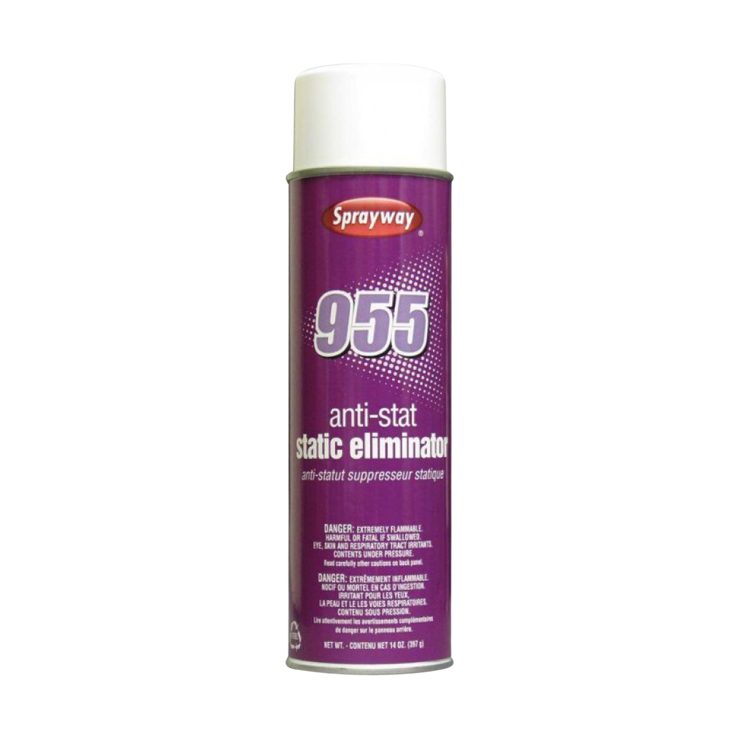 Sprayway® 955™ Anti-Stat™ is a ready-to-use aerosol spray formulated to eliminate static electricity on contact. It reduces dust attraction, prevents sticking, and helps materials flow more smoothly through equipment. Ideal for use on plastic, paper, film, and other non-conductive surfaces. The formula is fast-drying, non-staining, and safe for use in static-sensitive environments such as cleanrooms, print shops, and electronics manufacturing.
