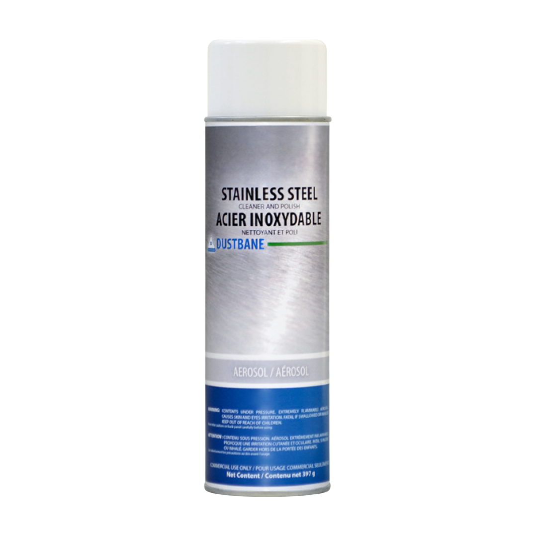 Dustbane® Stainless Steel Cleaner & Polish is a professional-grade aerosol designed to clean, polish, and protect stainless steel surfaces in one step. It removes fingerprints, smudges, grease, and water marks while leaving a streak-free, polished finish. Ideal for maintaining the appearance of appliances, fixtures, and equipment in commercial and industrial settings.